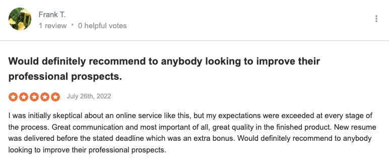 Now in terms of what career level they’re best for, it’s hard to say. Their tiered packages and expertise in 80+ industries mean they offer resume personalization to anyone from entry-level to executive. And based on reviews, people at various career stages saw great results.