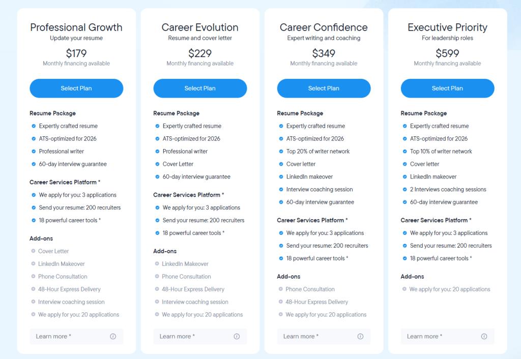On the positive side, their Fast Track and Premium packages do come with a 60-day interview guarantee. Which means they’ll continually revise your new resume until you land an interview.